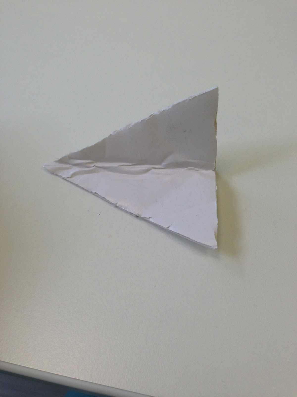 Y ya tenemos nuestra letra. Si queremos ponerle un soporte para que se tengan en pie y no tenerlas que apoyar en nada, vamos a cortar un triángulo isósceles que no sea más grande que nuestra letra par que quede oculto y lo doblamos por la mitad para pegarlo por detrás.
